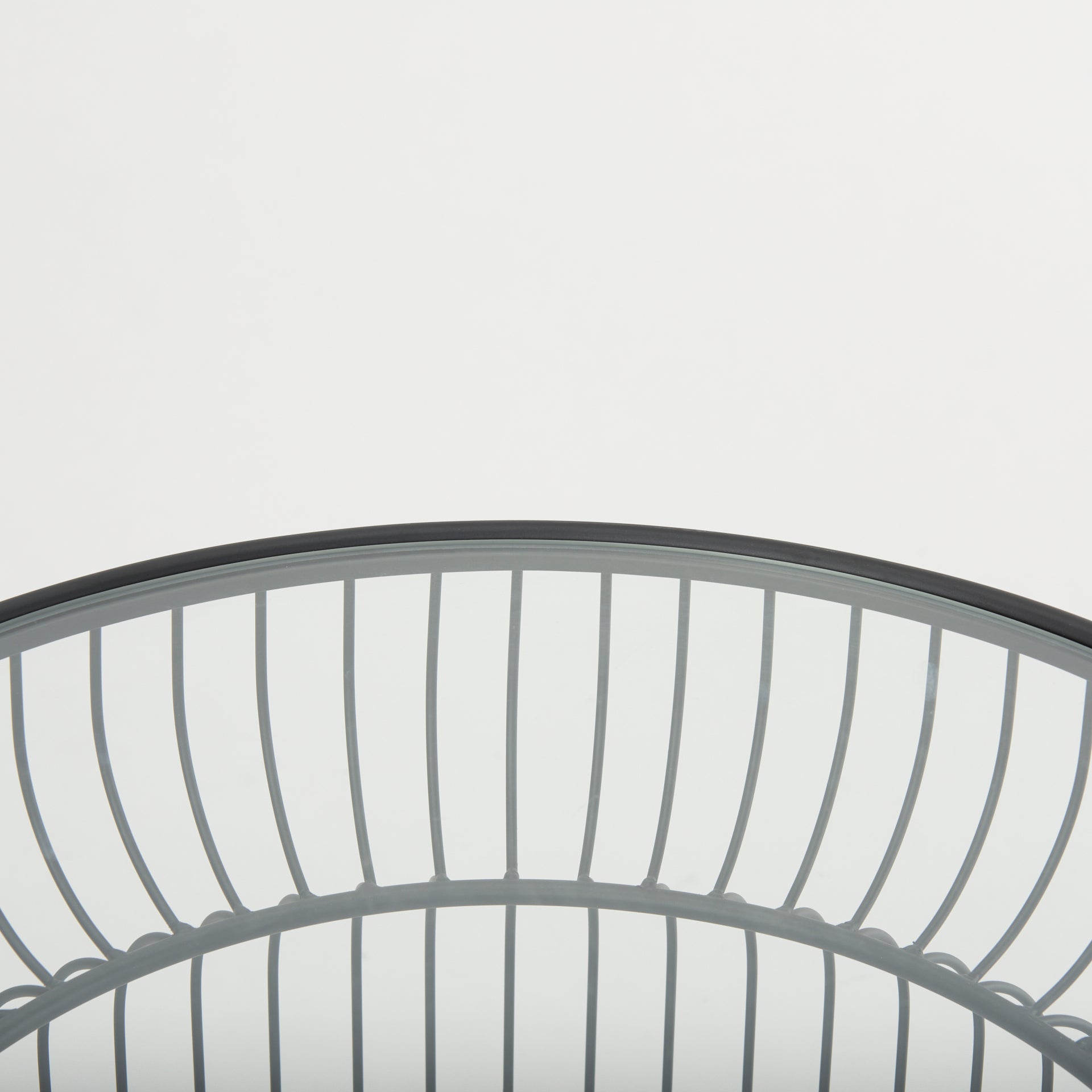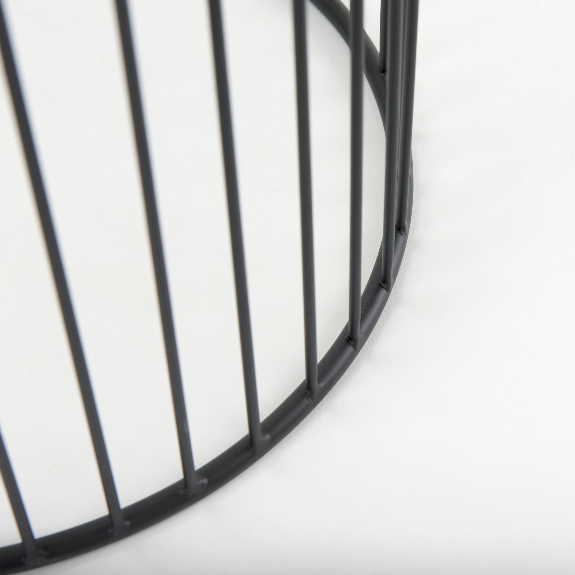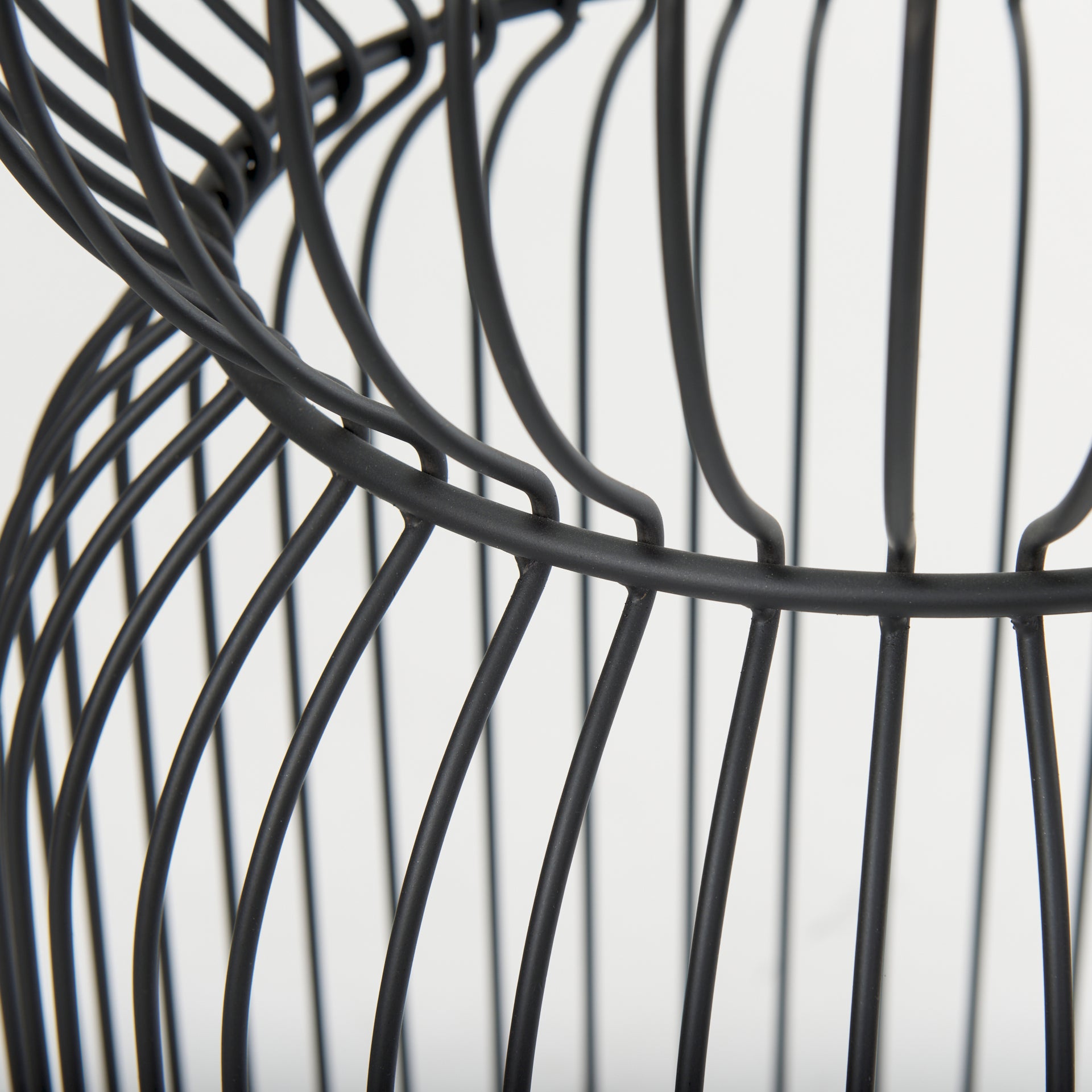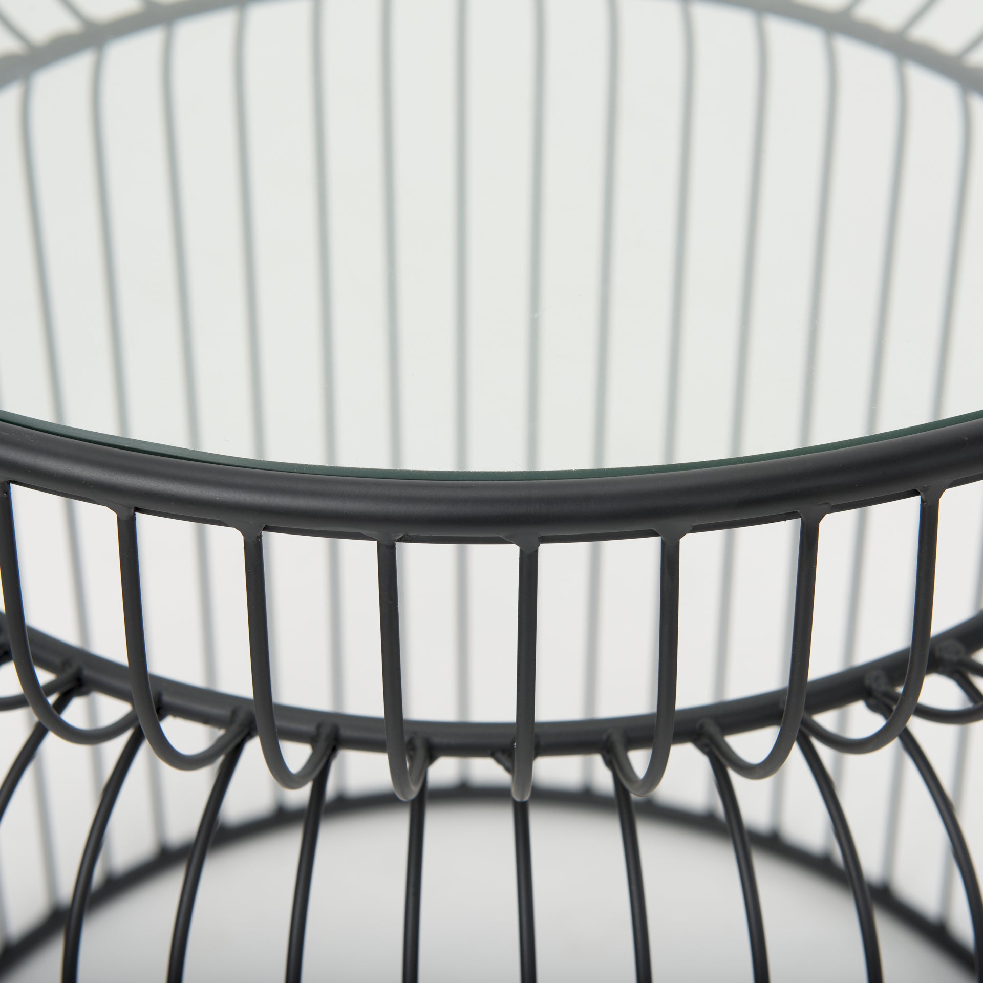 A set of two visually interesting pieces, the Shani Accent Tables each feature a hemmed-in cage-like base finished in a sleek matte black.. One table is tall and cylindrical, whilst the other is shorter with a wider circumference. Each base clasps a tempered glass top that offers a fascinating perspective of the base from above. This table would fit perfectly into Contemporary and Modern design styles.