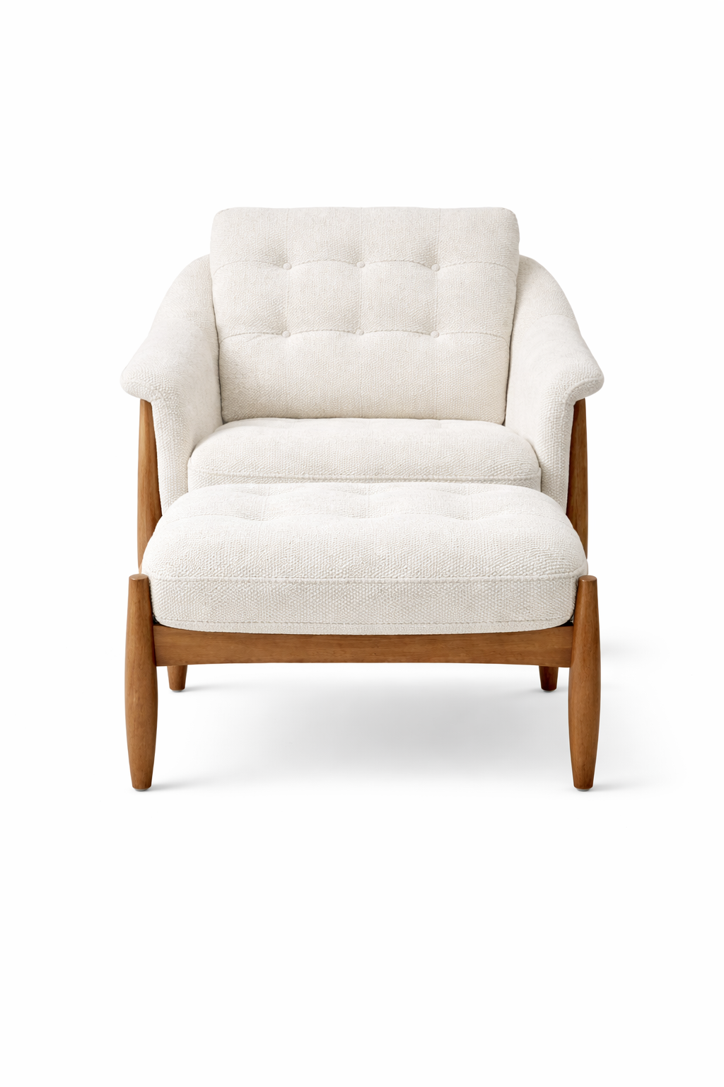 Designed for effortless comfort and timeless appeal, this chair and ottoman set brings a refined mid-century silhouette into the modern home. Gently curved arms, a softly tufted back, and clean architectural lines create a look that feels both tailored and inviting.